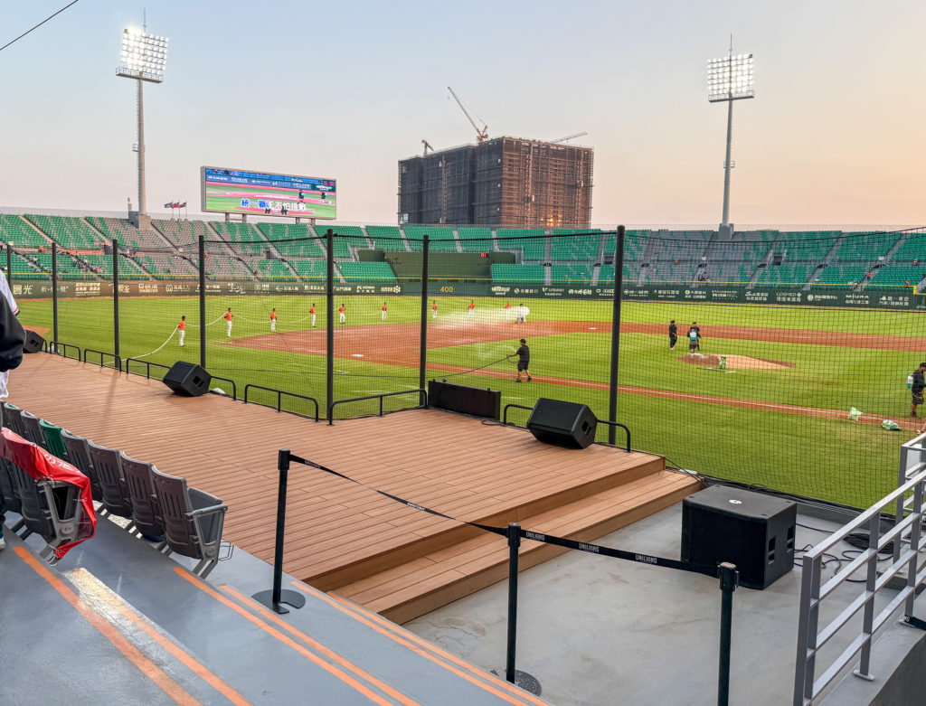 ここからは個人的な感想も含みますが、良くなったと感じた点の一つは、ステージ前を人が通過する機会が減ったことです。以前の台南球場では、ステージ前の通路を通らないと座席に行けない構造でしたが、亜太棒球場では別の動線から座席へ移動できるため、撮影中に人が横切る場面は少なくなるのではないかと感じました。台南球場のあの雰囲気も魅力ではありましたが、この点は改善されたと感じています。